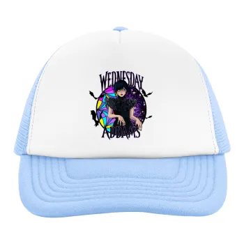 Wednesday Jenna Ortega, Καπέλο παιδικό Soft Trucker με Δίχτυ ΓΑΛΑΖΙΟ/ΛΕΥΚΟ (POLYESTER, ΠΑΙΔΙΚΟ, ONE SIZE)