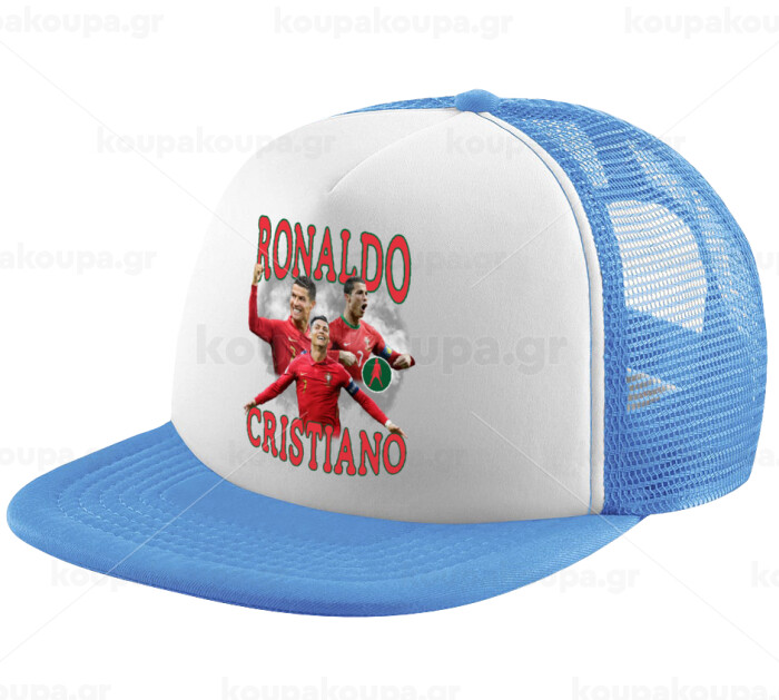 Κριστιάνο Ρονάλντο, Καπέλο παιδικό Soft Trucker με Δίχτυ ΓΑΛΑΖΙΟ/ΛΕΥΚΟ (POLYESTER, ΠΑΙΔΙΚΟ, ONE SIZE)