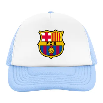 Barcelona FC, Καπέλο παιδικό Soft Trucker με Δίχτυ ΓΑΛΑΖΙΟ/ΛΕΥΚΟ (POLYESTER, ΠΑΙΔΙΚΟ, ONE SIZE)