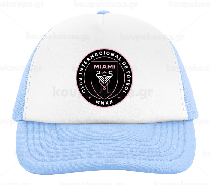 Ίντερ Μαϊάμι (Inter Miami CF), Καπέλο παιδικό Soft Trucker με Δίχτυ ΓΑΛΑΖΙΟ/ΛΕΥΚΟ (POLYESTER, ΠΑΙΔΙΚΟ, ONE SIZE)