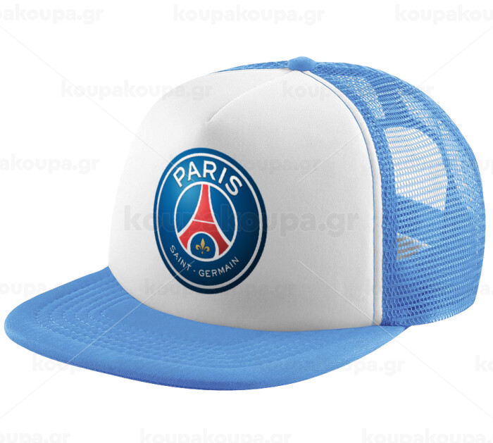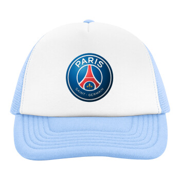 Paris Saint-Germain F.C., Καπέλο παιδικό Soft Trucker με Δίχτυ ΓΑΛΑΖΙΟ/ΛΕΥΚΟ (POLYESTER, ΠΑΙΔΙΚΟ, ONE SIZE)