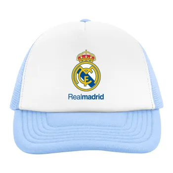 Real Madrid CF, Καπέλο παιδικό Soft Trucker με Δίχτυ ΓΑΛΑΖΙΟ/ΛΕΥΚΟ (POLYESTER, ΠΑΙΔΙΚΟ, ONE SIZE)