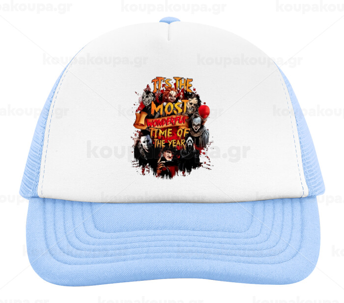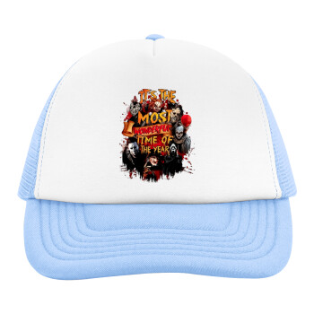 Halloween it's most wonderful time of the year, Καπέλο παιδικό Soft Trucker με Δίχτυ ΓΑΛΑΖΙΟ/ΛΕΥΚΟ (POLYESTER, ΠΑΙΔΙΚΟ, ONE SIZE)