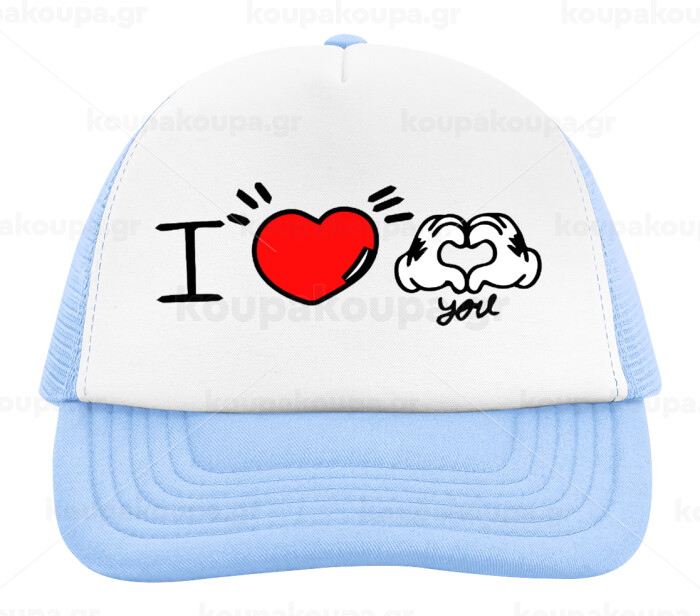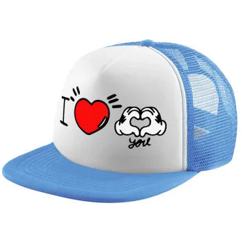 comics hands love, Καπέλο παιδικό Soft Trucker με Δίχτυ ΓΑΛΑΖΙΟ/ΛΕΥΚΟ (POLYESTER, ΠΑΙΔΙΚΟ, ONE SIZE)