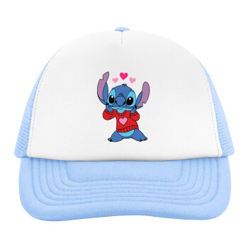 Stitch heart, Καπέλο παιδικό Soft Trucker με Δίχτυ ΓΑΛΑΖΙΟ/ΛΕΥΚΟ (POLYESTER, ΠΑΙΔΙΚΟ, ONE SIZE)