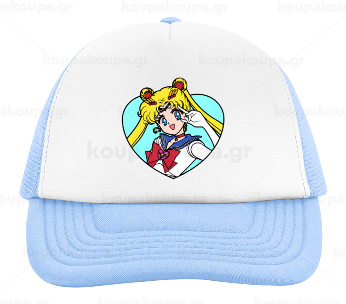 Sailor Moon star, Καπέλο παιδικό Soft Trucker με Δίχτυ ΓΑΛΑΖΙΟ/ΛΕΥΚΟ (POLYESTER, ΠΑΙΔΙΚΟ, ONE SIZE)