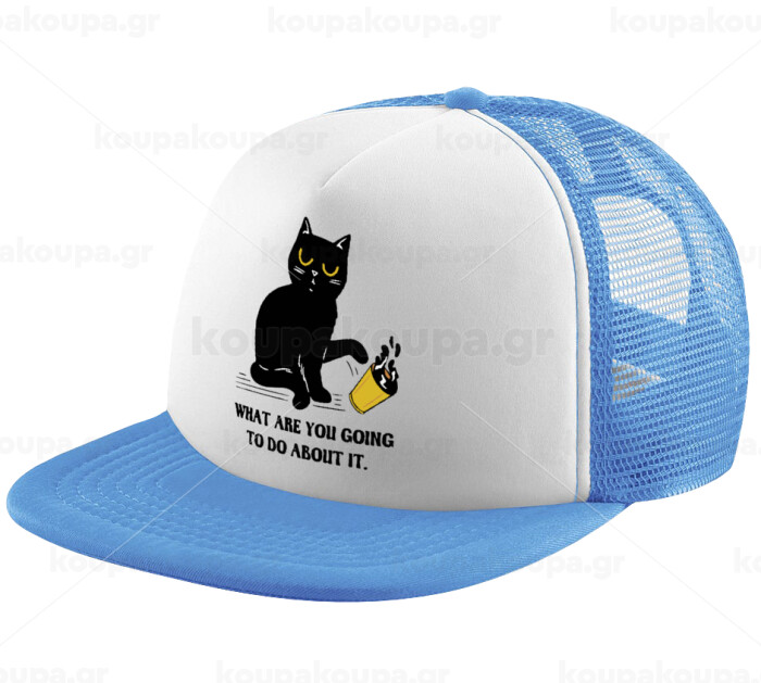 CAT, what are you going to do about it!, Καπέλο παιδικό Soft Trucker με Δίχτυ ΓΑΛΑΖΙΟ/ΛΕΥΚΟ (POLYESTER, ΠΑΙΔΙΚΟ, ONE SIZE)