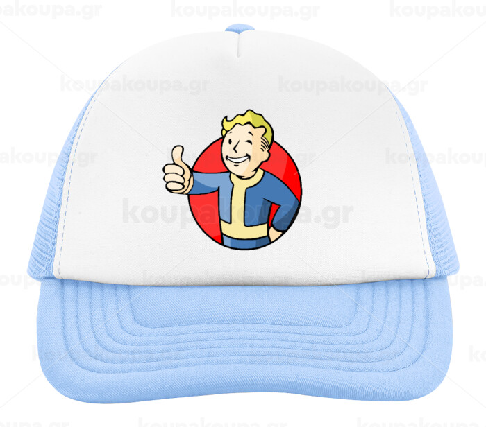 Fallout Vault Boy, Καπέλο παιδικό Soft Trucker με Δίχτυ ΓΑΛΑΖΙΟ/ΛΕΥΚΟ (POLYESTER, ΠΑΙΔΙΚΟ, ONE SIZE)