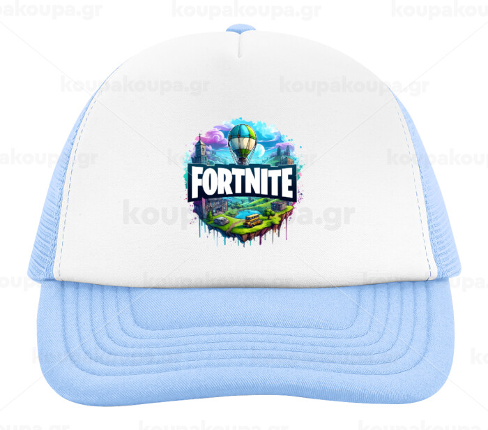 Fortnite land, Καπέλο παιδικό Soft Trucker με Δίχτυ ΓΑΛΑΖΙΟ/ΛΕΥΚΟ (POLYESTER, ΠΑΙΔΙΚΟ, ONE SIZE)