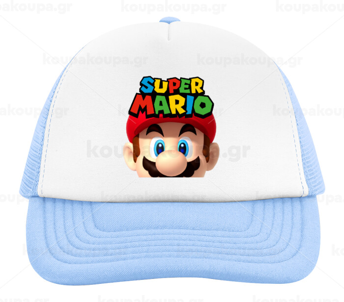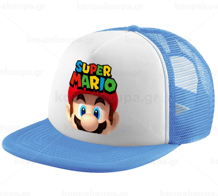 Super mario, Καπέλο παιδικό Soft Trucker με Δίχτυ ΓΑΛΑΖΙΟ/ΛΕΥΚΟ (POLYESTER, ΠΑΙΔΙΚΟ, ONE SIZE)