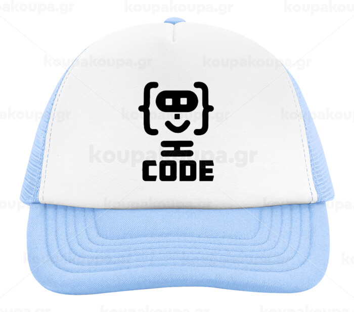 Code Heroes symbol, Καπέλο παιδικό Soft Trucker με Δίχτυ ΓΑΛΑΖΙΟ/ΛΕΥΚΟ (POLYESTER, ΠΑΙΔΙΚΟ, ONE SIZE)