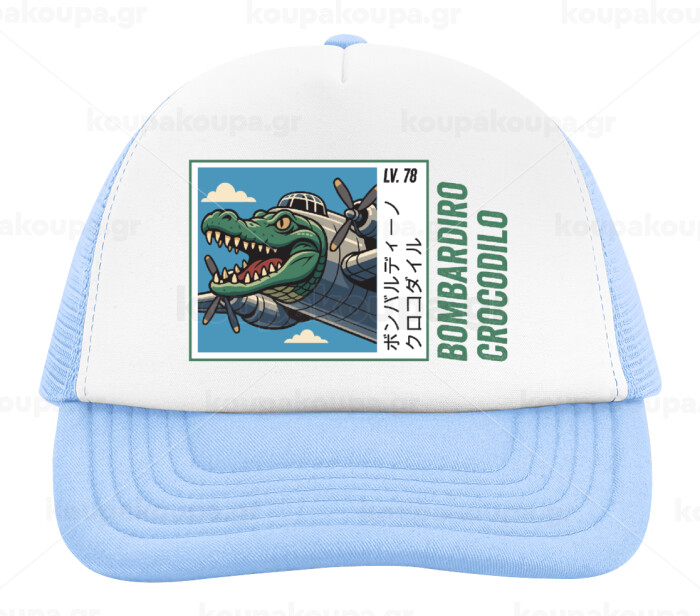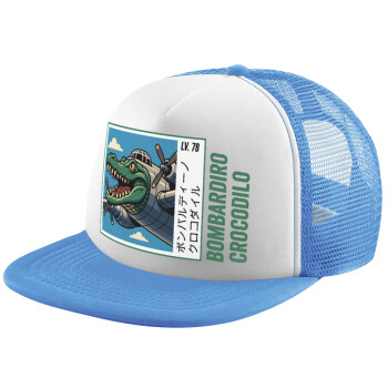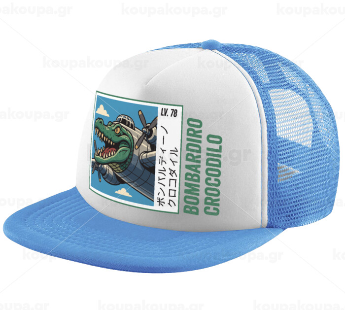 Bombardiro Crocodilo, Καπέλο παιδικό Soft Trucker με Δίχτυ ΓΑΛΑΖΙΟ/ΛΕΥΚΟ (POLYESTER, ΠΑΙΔΙΚΟ, ONE SIZE)