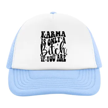 Karma is Only A Bitch if You Are, Καπέλο παιδικό Soft Trucker με Δίχτυ ΓΑΛΑΖΙΟ/ΛΕΥΚΟ (POLYESTER, ΠΑΙΔΙΚΟ, ONE SIZE)