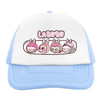 Labubu pink, Καπέλο παιδικό Soft Trucker με Δίχτυ ΓΑΛΑΖΙΟ/ΛΕΥΚΟ (POLYESTER, ΠΑΙΔΙΚΟ, ONE SIZE)