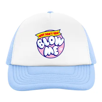 Why Don't You Blow Me Funny, Καπέλο παιδικό Soft Trucker με Δίχτυ ΓΑΛΑΖΙΟ/ΛΕΥΚΟ (POLYESTER, ΠΑΙΔΙΚΟ, ONE SIZE)