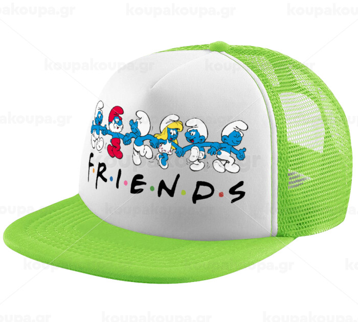 Friends Smurfs, Καπέλο παιδικό Soft Trucker με Δίχτυ ΠΡΑΣΙΝΟ/ΛΕΥΚΟ (POLYESTER, ΠΑΙΔΙΚΟ, ONE SIZE)