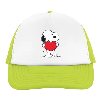 Snoopy takemy heart, Καπέλο παιδικό Soft Trucker με Δίχτυ ΠΡΑΣΙΝΟ/ΛΕΥΚΟ (POLYESTER, ΠΑΙΔΙΚΟ, ONE SIZE)