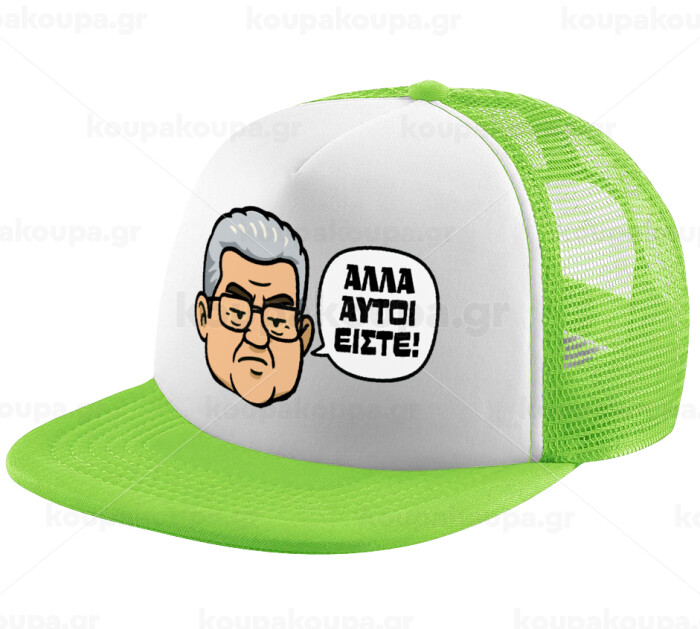 Κουτσούμπας, "Αλλά αυτοί είστε!", Καπέλο παιδικό Soft Trucker με Δίχτυ ΠΡΑΣΙΝΟ/ΛΕΥΚΟ (POLYESTER, ΠΑΙΔΙΚΟ, ONE SIZE)