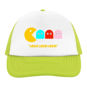 Pacman waka waka waka, Καπέλο παιδικό Soft Trucker με Δίχτυ ΠΡΑΣΙΝΟ/ΛΕΥΚΟ (POLYESTER, ΠΑΙΔΙΚΟ, ONE SIZE)