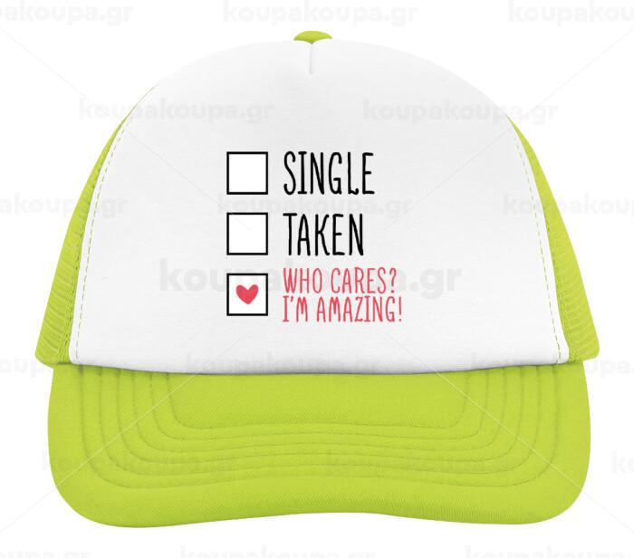 Single, Taken, Who cares i'm amazing, Καπέλο παιδικό Soft Trucker με Δίχτυ ΠΡΑΣΙΝΟ/ΛΕΥΚΟ (POLYESTER, ΠΑΙΔΙΚΟ, ONE SIZE)