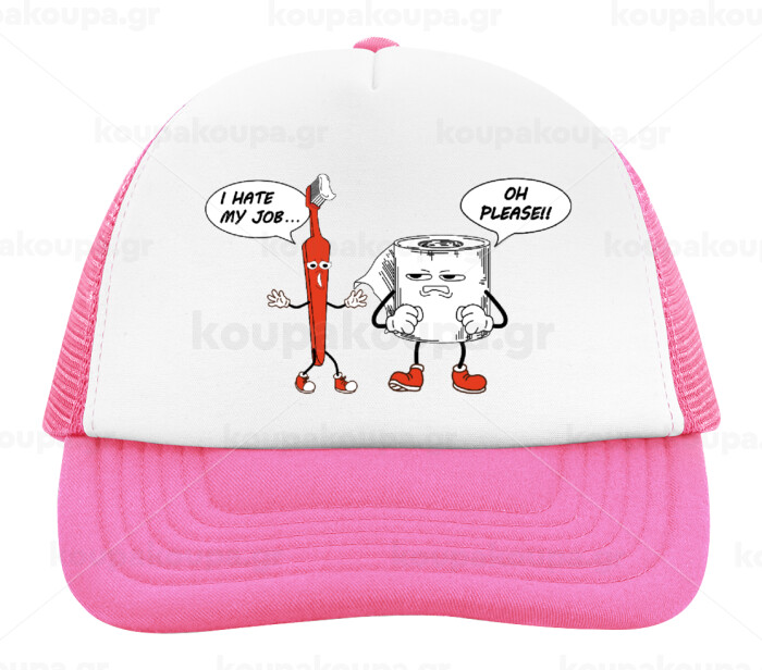 I hate my job, Καπέλο παιδικό Soft Trucker με Δίχτυ ΡΟΖ/ΛΕΥΚΟ (POLYESTER, ΠΑΙΔΙΚΟ, ONE SIZE)