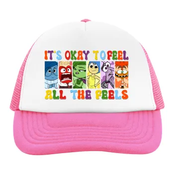 Inside Out It's Okay To Feel All The Feels , Καπέλο παιδικό Soft Trucker με Δίχτυ ΡΟΖ/ΛΕΥΚΟ (POLYESTER, ΠΑΙΔΙΚΟ, ONE SIZE)