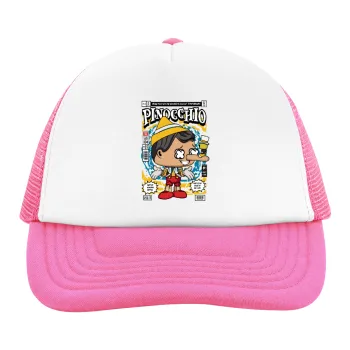 Pinocchio, Καπέλο παιδικό Soft Trucker με Δίχτυ ΡΟΖ/ΛΕΥΚΟ (POLYESTER, ΠΑΙΔΙΚΟ, ONE SIZE)