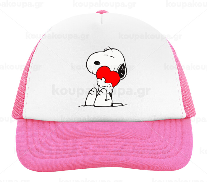 Snoopy, Καπέλο παιδικό Soft Trucker με Δίχτυ ΡΟΖ/ΛΕΥΚΟ (POLYESTER, ΠΑΙΔΙΚΟ, ONE SIZE)