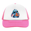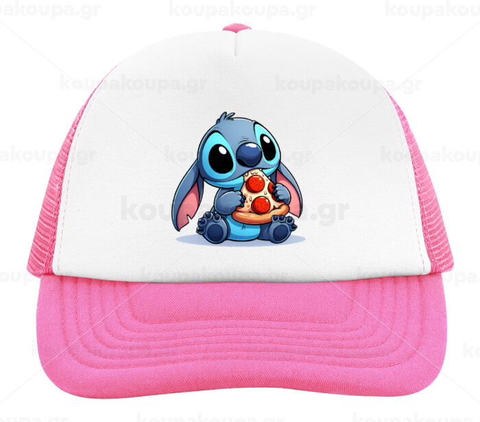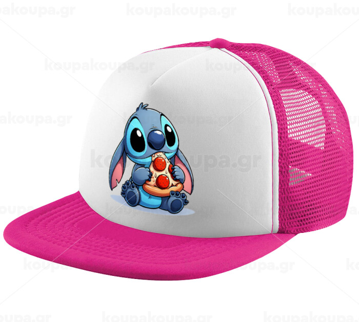 Stitch Pizza, Καπέλο παιδικό Soft Trucker με Δίχτυ ΡΟΖ/ΛΕΥΚΟ (POLYESTER, ΠΑΙΔΙΚΟ, ONE SIZE)