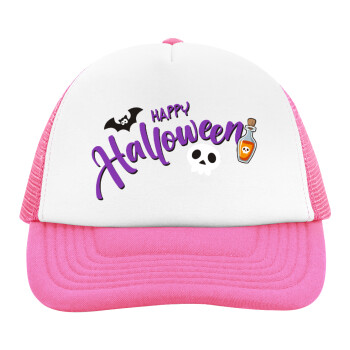 Happy Halloween (Χαλοουίν), Καπέλο παιδικό Soft Trucker με Δίχτυ ΡΟΖ/ΛΕΥΚΟ (POLYESTER, ΠΑΙΔΙΚΟ, ONE SIZE)