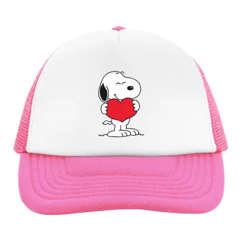 Snoopy takemy heart, Καπέλο παιδικό Soft Trucker με Δίχτυ ΡΟΖ/ΛΕΥΚΟ (POLYESTER, ΠΑΙΔΙΚΟ, ONE SIZE)