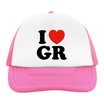 I Love GR, Καπέλο παιδικό Soft Trucker με Δίχτυ ΡΟΖ/ΛΕΥΚΟ (POLYESTER, ΠΑΙΔΙΚΟ, ONE SIZE)