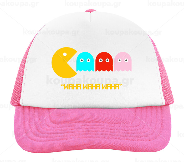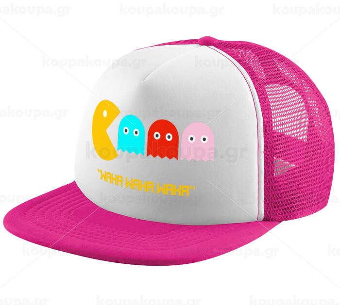 Pacman waka waka waka, Καπέλο παιδικό Soft Trucker με Δίχτυ ΡΟΖ/ΛΕΥΚΟ (POLYESTER, ΠΑΙΔΙΚΟ, ONE SIZE)