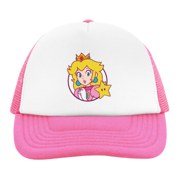 Princess Peach, Καπέλο παιδικό Soft Trucker με Δίχτυ ΡΟΖ/ΛΕΥΚΟ (POLYESTER, ΠΑΙΔΙΚΟ, ONE SIZE)