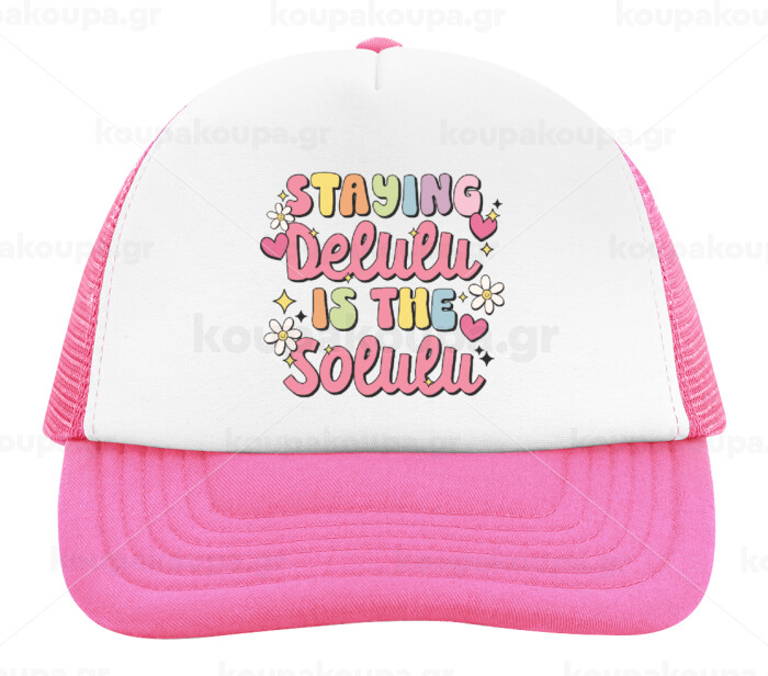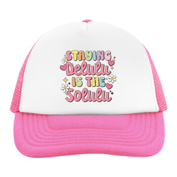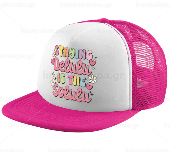 Delulu, Καπέλο παιδικό Soft Trucker με Δίχτυ ΡΟΖ/ΛΕΥΚΟ (POLYESTER, ΠΑΙΔΙΚΟ, ONE SIZE)
