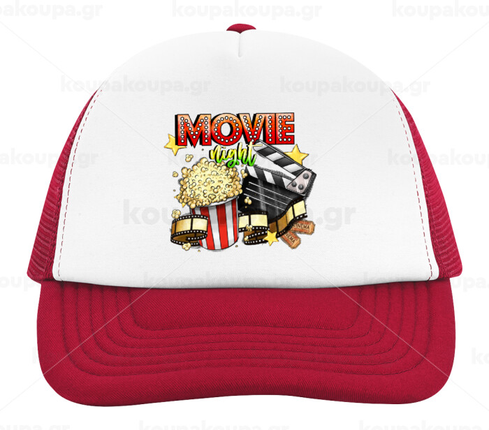 Movie night, Καπέλο παιδικό Soft Trucker με Δίχτυ ΚΟΚΚΙΝΟ/ΛΕΥΚΟ (POLYESTER, ΠΑΙΔΙΚΟ, ONE SIZE)