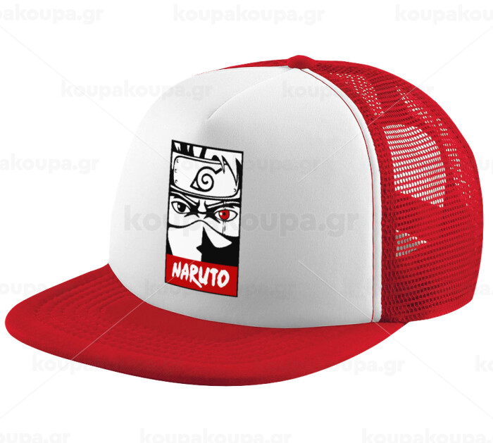 Naruto anime, Καπέλο παιδικό Soft Trucker με Δίχτυ ΚΟΚΚΙΝΟ/ΛΕΥΚΟ (POLYESTER, ΠΑΙΔΙΚΟ, ONE SIZE)