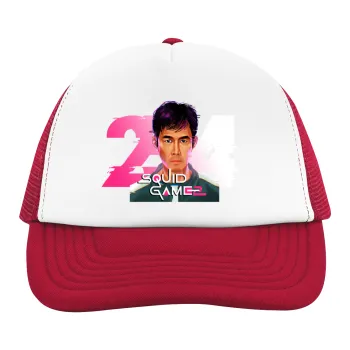 Squid game 456 Gi-Hun, Καπέλο παιδικό Soft Trucker με Δίχτυ ΚΟΚΚΙΝΟ/ΛΕΥΚΟ (POLYESTER, ΠΑΙΔΙΚΟ, ONE SIZE)