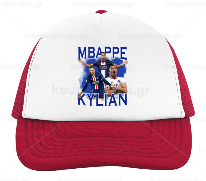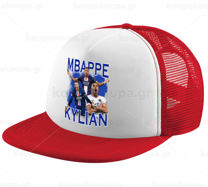 Kylian mbappe, Καπέλο παιδικό Soft Trucker με Δίχτυ ΚΟΚΚΙΝΟ/ΛΕΥΚΟ (POLYESTER, ΠΑΙΔΙΚΟ, ONE SIZE)