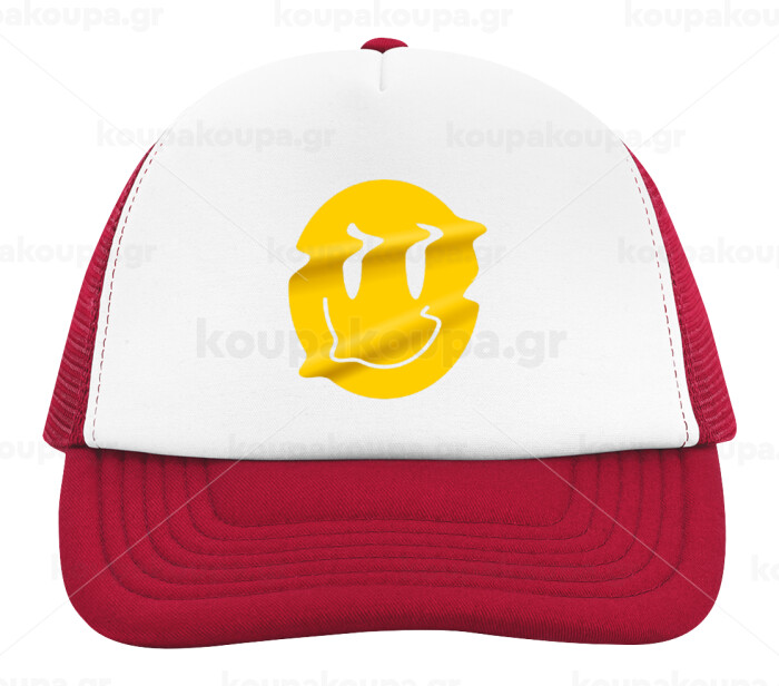 Smile avatar distrorted, Καπέλο παιδικό Soft Trucker με Δίχτυ ΚΟΚΚΙΝΟ/ΛΕΥΚΟ (POLYESTER, ΠΑΙΔΙΚΟ, ONE SIZE)