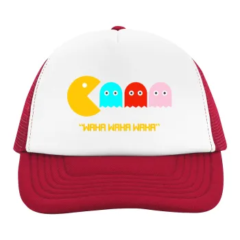 Pacman waka waka waka, Καπέλο παιδικό Soft Trucker με Δίχτυ ΚΟΚΚΙΝΟ/ΛΕΥΚΟ (POLYESTER, ΠΑΙΔΙΚΟ, ONE SIZE)
