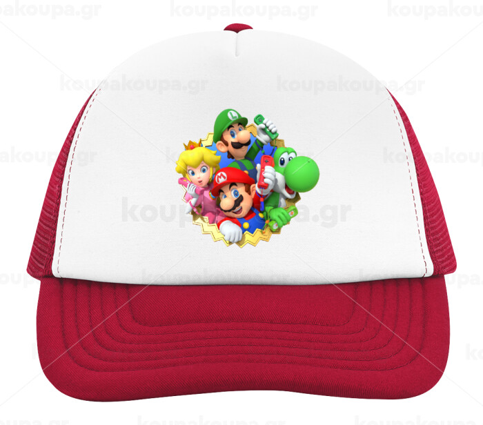 Super mario and Friends, Καπέλο παιδικό Soft Trucker με Δίχτυ ΚΟΚΚΙΝΟ/ΛΕΥΚΟ (POLYESTER, ΠΑΙΔΙΚΟ, ONE SIZE)