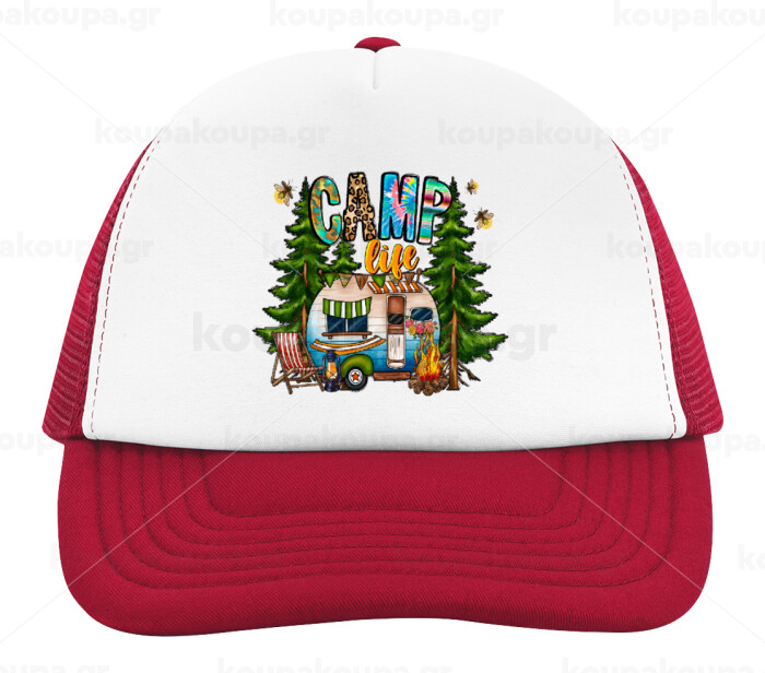 Camp Life, Καπέλο παιδικό Soft Trucker με Δίχτυ ΚΟΚΚΙΝΟ/ΛΕΥΚΟ (POLYESTER, ΠΑΙΔΙΚΟ, ONE SIZE)