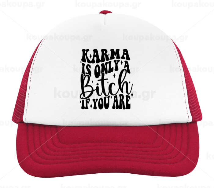 Karma is Only A Bitch if You Are, Καπέλο παιδικό Soft Trucker με Δίχτυ ΚΟΚΚΙΝΟ/ΛΕΥΚΟ (POLYESTER, ΠΑΙΔΙΚΟ, ONE SIZE)