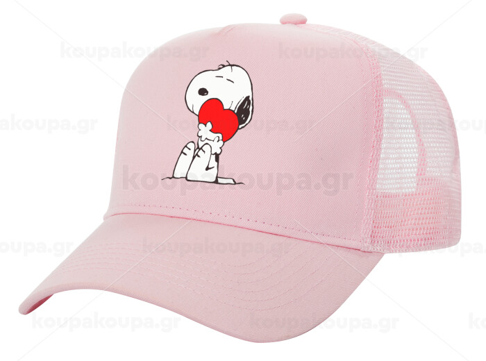 Snoopy, Καπέλο Παιδικό Structured Trucker, με Δίχτυ, ΡΟΖ (100% ΒΑΜΒΑΚΕΡΟ, ΠΑΙΔΙΚΟ, UNISEX, ONE SIZE)