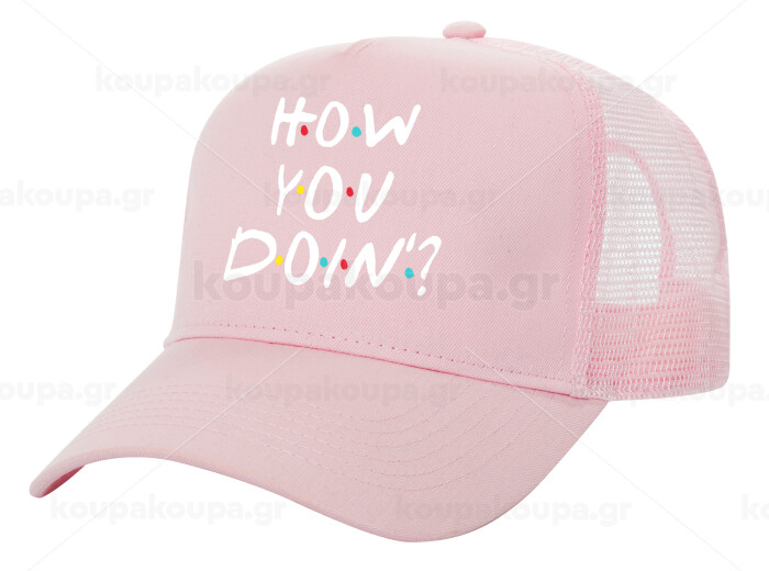 Friends How You Doin'?, Καπέλο Παιδικό Structured Trucker, με Δίχτυ, ΡΟΖ (100% ΒΑΜΒΑΚΕΡΟ, ΠΑΙΔΙΚΟ, UNISEX, ONE SIZE)