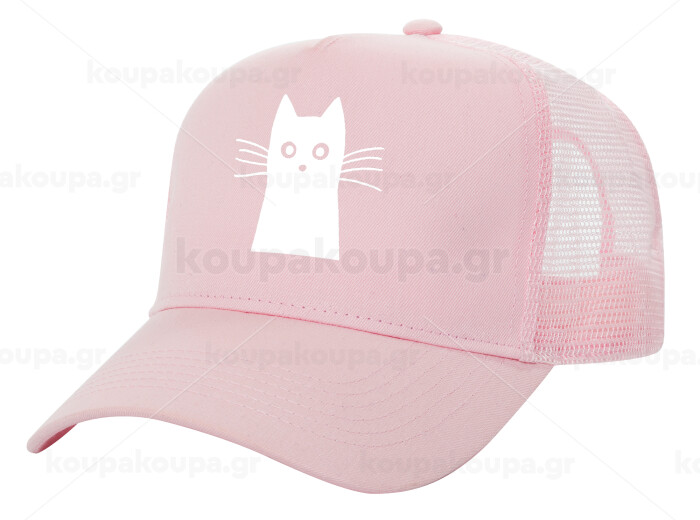 Μαύρη γάτα, Καπέλο Παιδικό Structured Trucker, με Δίχτυ, ΡΟΖ (100% ΒΑΜΒΑΚΕΡΟ, ΠΑΙΔΙΚΟ, UNISEX, ONE SIZE)
