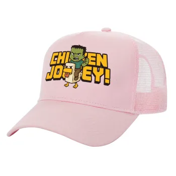 Chicken Jockey, Καπέλο Παιδικό Structured Trucker, με Δίχτυ, ΡΟΖ (100% ΒΑΜΒΑΚΕΡΟ, ΠΑΙΔΙΚΟ, UNISEX, ONE SIZE)