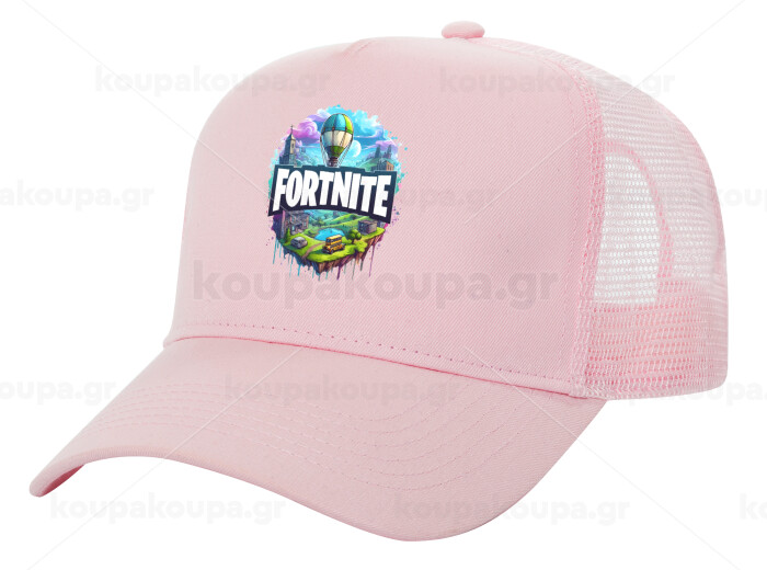 Fortnite land, Καπέλο Παιδικό Structured Trucker, με Δίχτυ, ΡΟΖ (100% ΒΑΜΒΑΚΕΡΟ, ΠΑΙΔΙΚΟ, UNISEX, ONE SIZE)