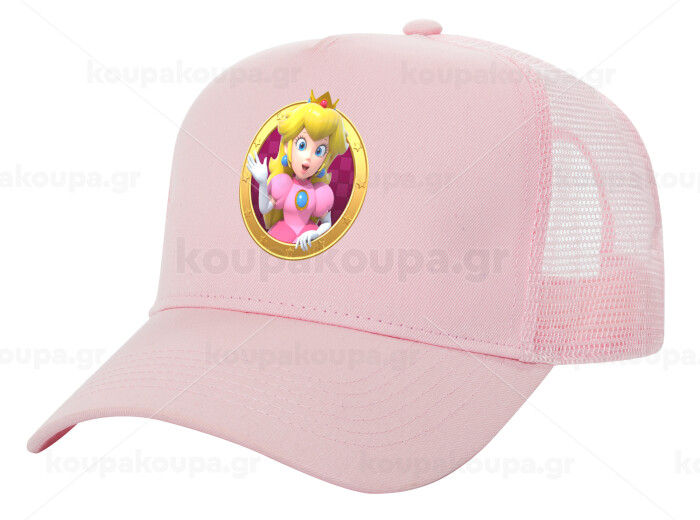 Princess Peach Toadstool, Καπέλο Παιδικό Structured Trucker, με Δίχτυ, ΡΟΖ (100% ΒΑΜΒΑΚΕΡΟ, ΠΑΙΔΙΚΟ, UNISEX, ONE SIZE)